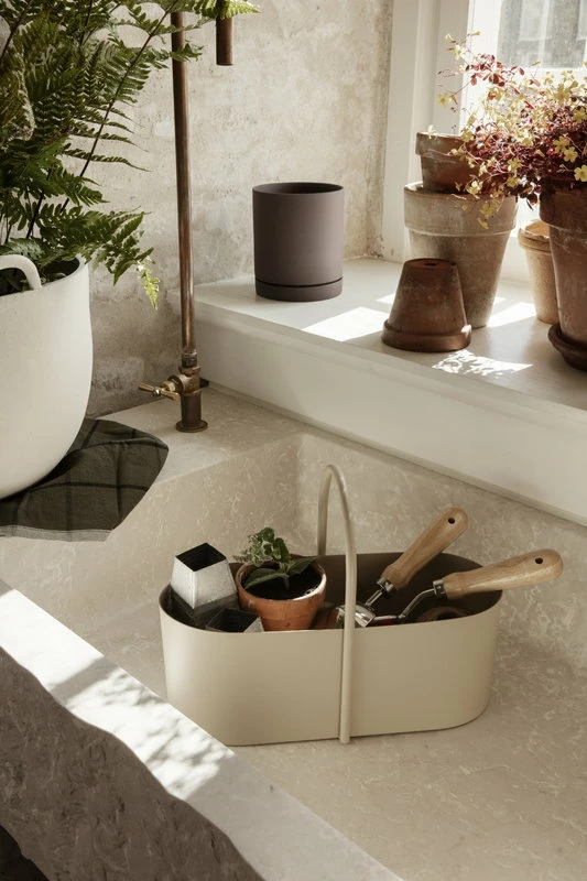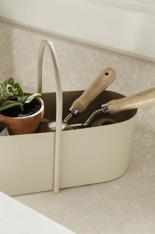 ferm LIVING’s Grib Toolbox is an elegant multipurpose storage box that charms with its gentle, soft design. Made from powder-coated metal, the container offers unlimited possibilities for storing small items and is ideal for tools, gardening supplies, cleaning items and bathroom essentials. The practical carrying handle and perforated bottom ensure an effortless and moveable solution for both indoor and outdoor needs.