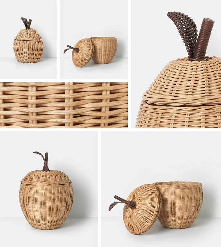 Small Apple braided basket by ferm LIVING is a fun storage solution for the children’s room. Made of braided rattan, the apple-shaped basket is perfect for storing toys and other small items. The light, natural rattan of the Small Apple basket gives an organic touch for the nursery.