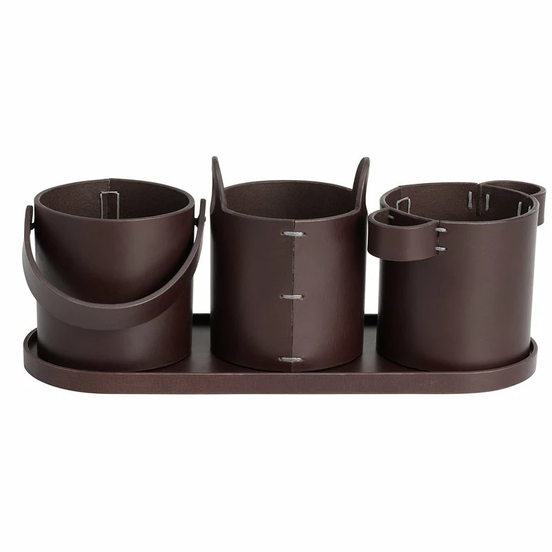 The Buckets container set, designed by Mia Lagerman, is based on the designer’s artwork ”The Five Buckets” created for The Cabinetmaker’s Autumn Exhibition. The three leather buckets each have their own look, each serving as a storage container on its own. But when placed side by side, the buckets form a unit that is clearly designed to be used together.