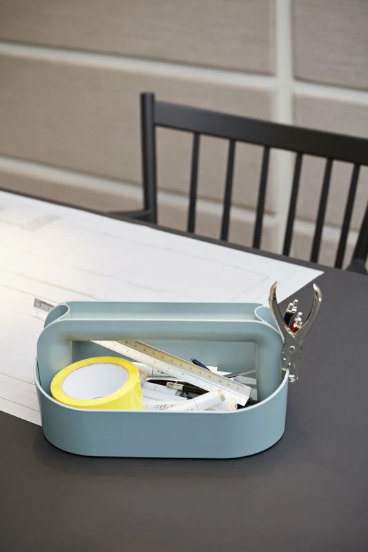 HAY’s Tool Box is designer Shane Scheck’s modern interpretation of a traditional toolbox. The streamlined plastic box offers a helpful way for storing and arranging all kinds of small items from tools to office supplies and sewing equipment. Tool Box’s handle not only helps to move things from place to another, but also forms three small extra compartments at the sides and top.