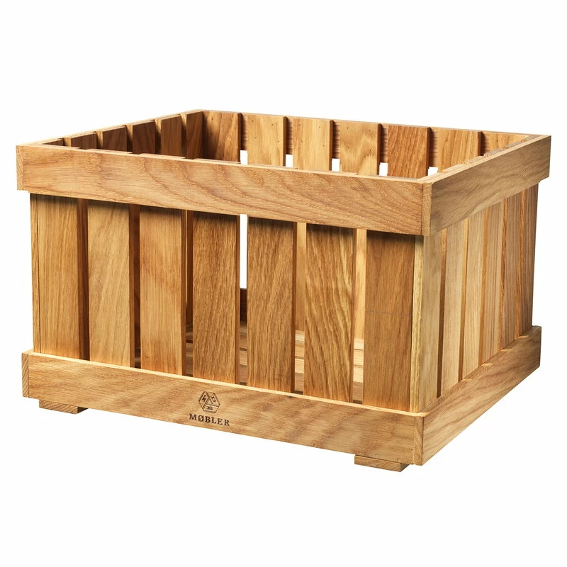 The oak wood box exudes an old-fashioned charm that makes it the perfect addition to rustic décor, for example at a summer cottage. However, the old-timey look also creates a delightful contrast in a more urban interior. The apple box is finished with the FDB Møbler logo.