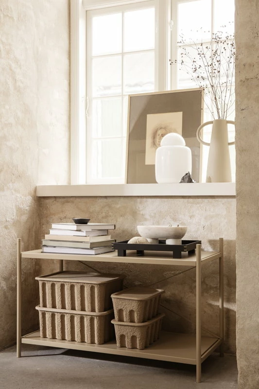 ferm LIVING’s storage boxes are made of recycled paper pulp. The lightweight boxes are easy to stack and put on a shelf or in the closet to keep your belongings organised.