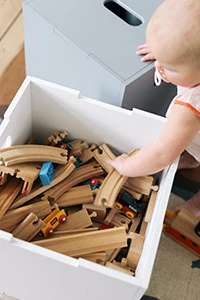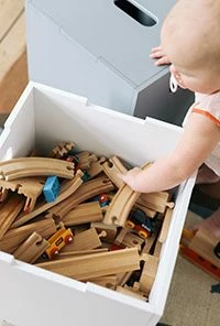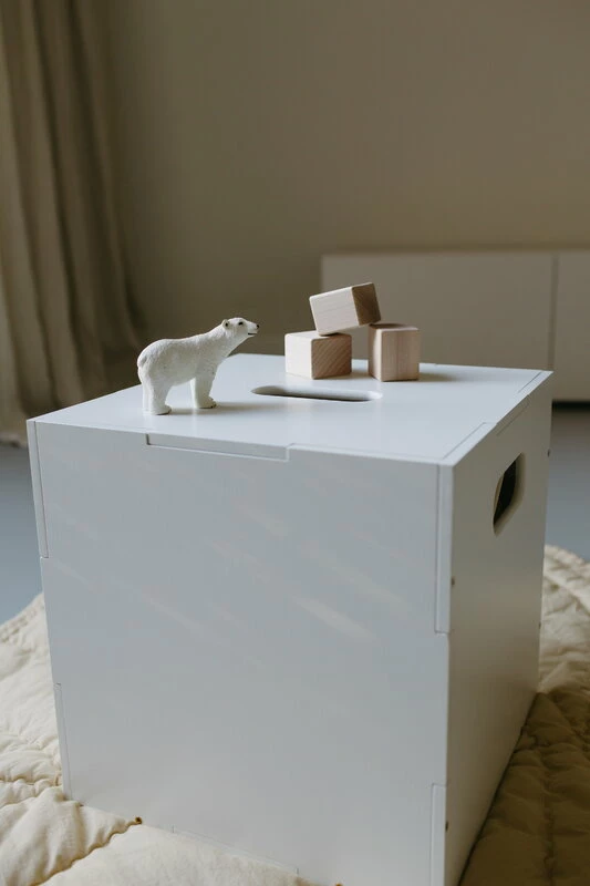 Nofred’s Cube storage box helps keep toys organized and the kidsβ room neat and tidy. Following Nofredβs ideology of letting the little ones be part of the familyβs everyday life, the storage box boasts a minimalist design that makes it the ideal storage space for toys and other kids’ items also elsewhere in the home. In the hallway or living room, for example, Cube also doubles as a small side table. The Cube storage box is sturdy enough to even be sat on β it really is the ultimate multi-purpose piece of kids’ storage furniture!
