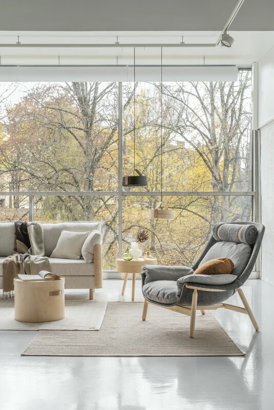 The Aski range, designed by Tapio Anttila, consists of smart, sleek and sustainable storage furniture, perfect for any room of the house. The main material used in the Aski products is bent birch plywood, which gives the products their distinctive, easily recognisable round shape.