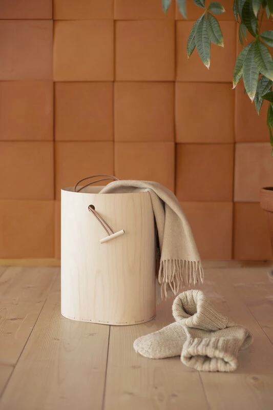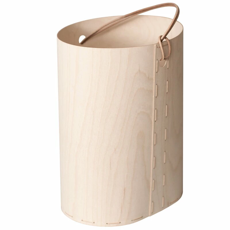 The Round basket, manufactured and designed by Tuulia Penttilä, creates a unique and multi-purpose setting for small storage. Crafted glue-free with the saddle-stitched method, the basket is made of thin birch plywood and finished with a playful leather strap. The soft-shaped design and simplistic appearance of the basket suit well for home storage or display. Due to its lightness, the Round basket travels with you also on daily errands.