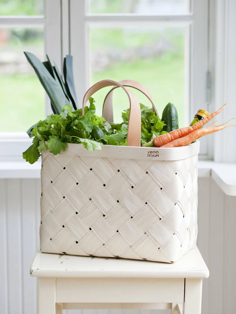 Verso Design’s Lastu basket collection is a fresh take on traditional Finnish baskets made of birch. The modern woven baskets are great for picking apples and mushrooms as well as for storing toys, magazines and other objects and accessories. The two layers of birch provide the Lastu baskets with added strength, and the beautiful leather handles add to the contemporary look.